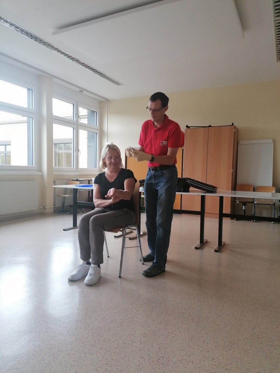 Auch ein 8-stündiger Erste-Hilfe Kurs für alle Lehrer:innen steht am Programm. 4 Stunden konnten wir bereits letzte Woche absolvieren.
