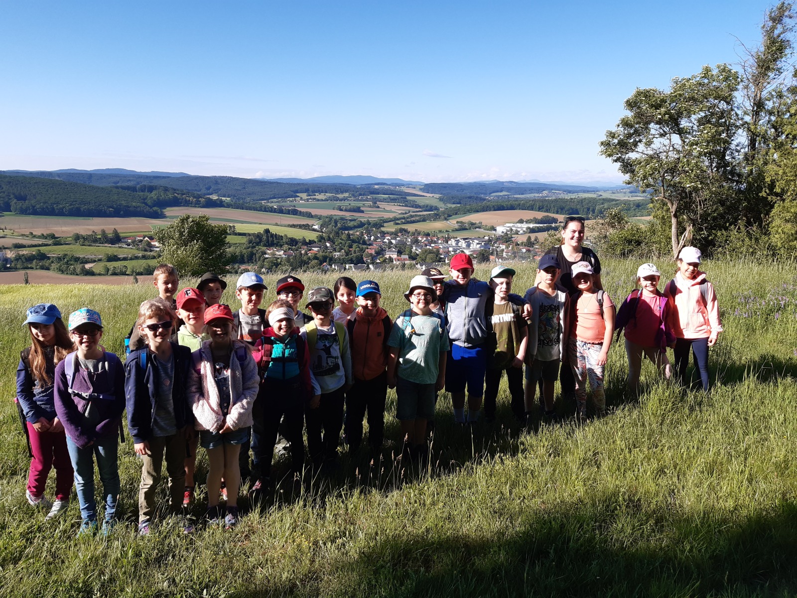 Der Wandertag der 2b führte auf den Auberg, durch den Glockenwald und nach Elsbach.