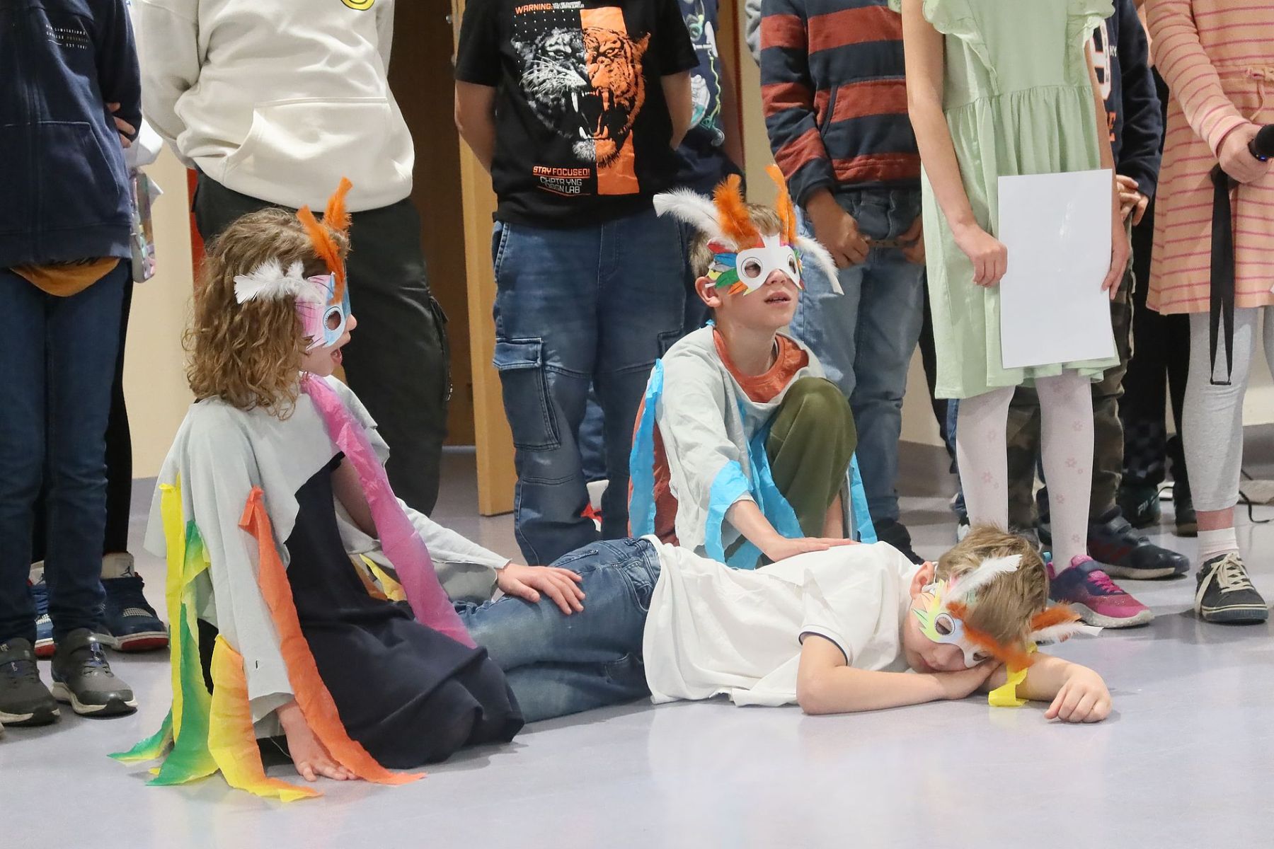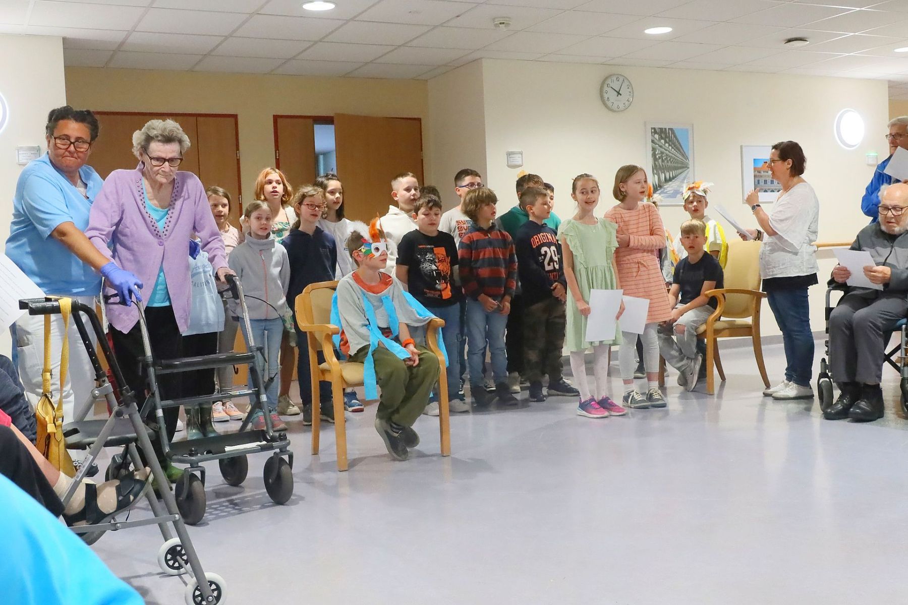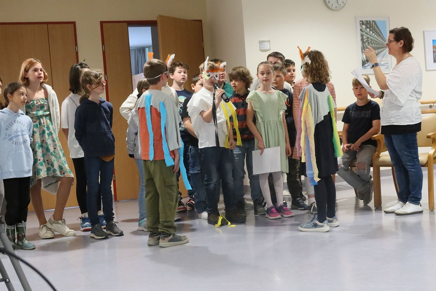 Am 17.05.2024 begeisterte die 3b unter der Leitung von Frau VOL Gabriele Kautz die Bewohnerinnen und Bewohner des Wohnbereichs 4 des Rosenheims Tulln mit der Aufführung des Kindermusicals „Die Vogelhochzeit“ von Rolf Zuckowski.