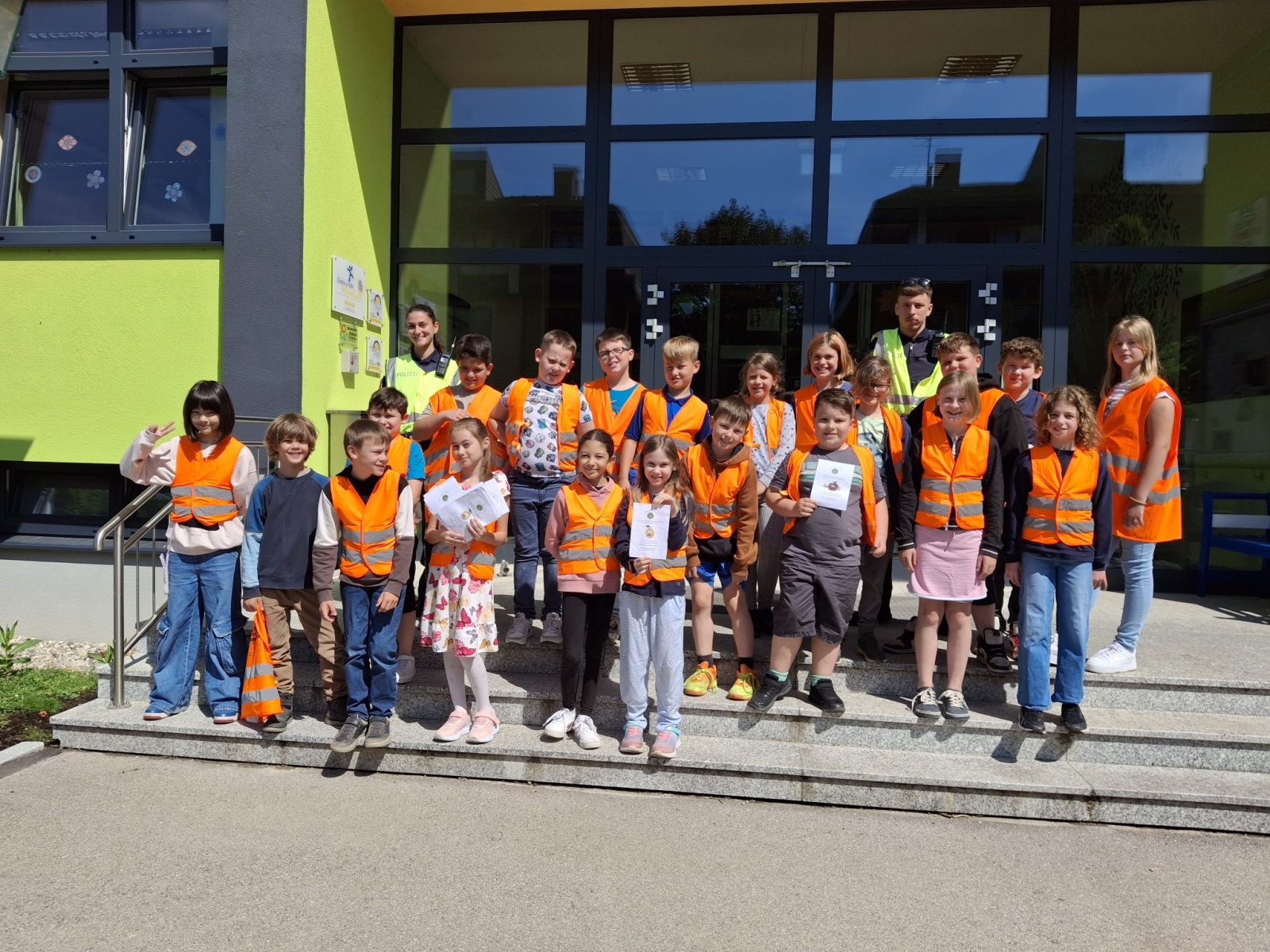Am 27.05. 2024 bekamen alle 3. Klassen im Rahmen des Projekts „Apfel-Zitrone“ Besuch von der ortsansässigen Polizei.
