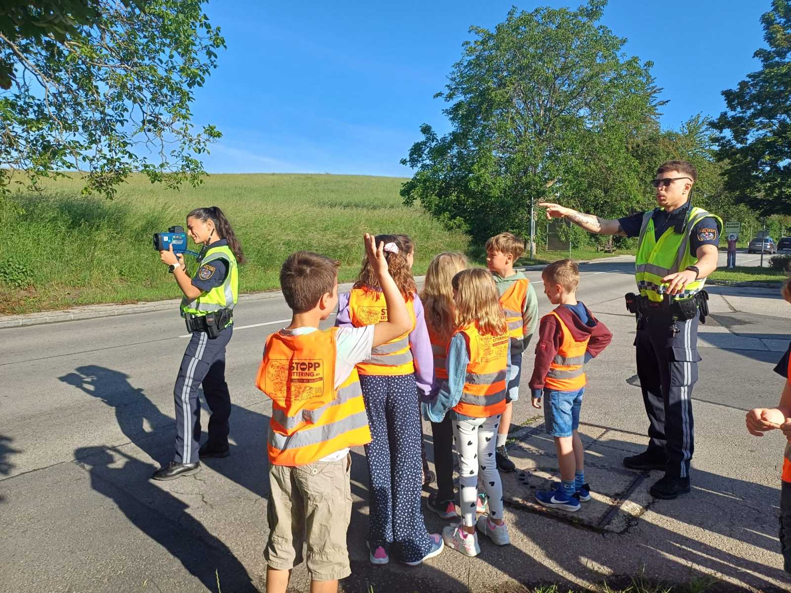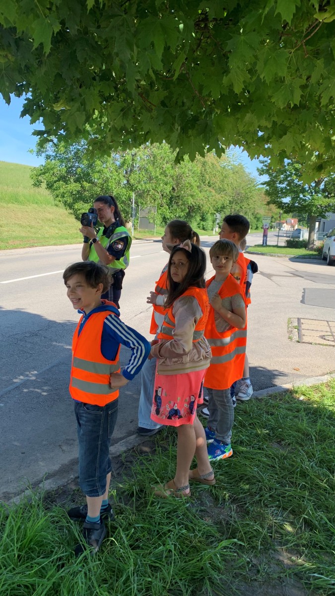 Die Kinder verteilten „Äpfel“ und „Zitronen“ an die AutofahrerInnen. Für eingehaltenes Tempolimit überreichten die Kinder zur Belohnung eine Apfelkarte und für zu schnelles Fahren erhielten die AutofahrerInnen eine Zitronenkarte.