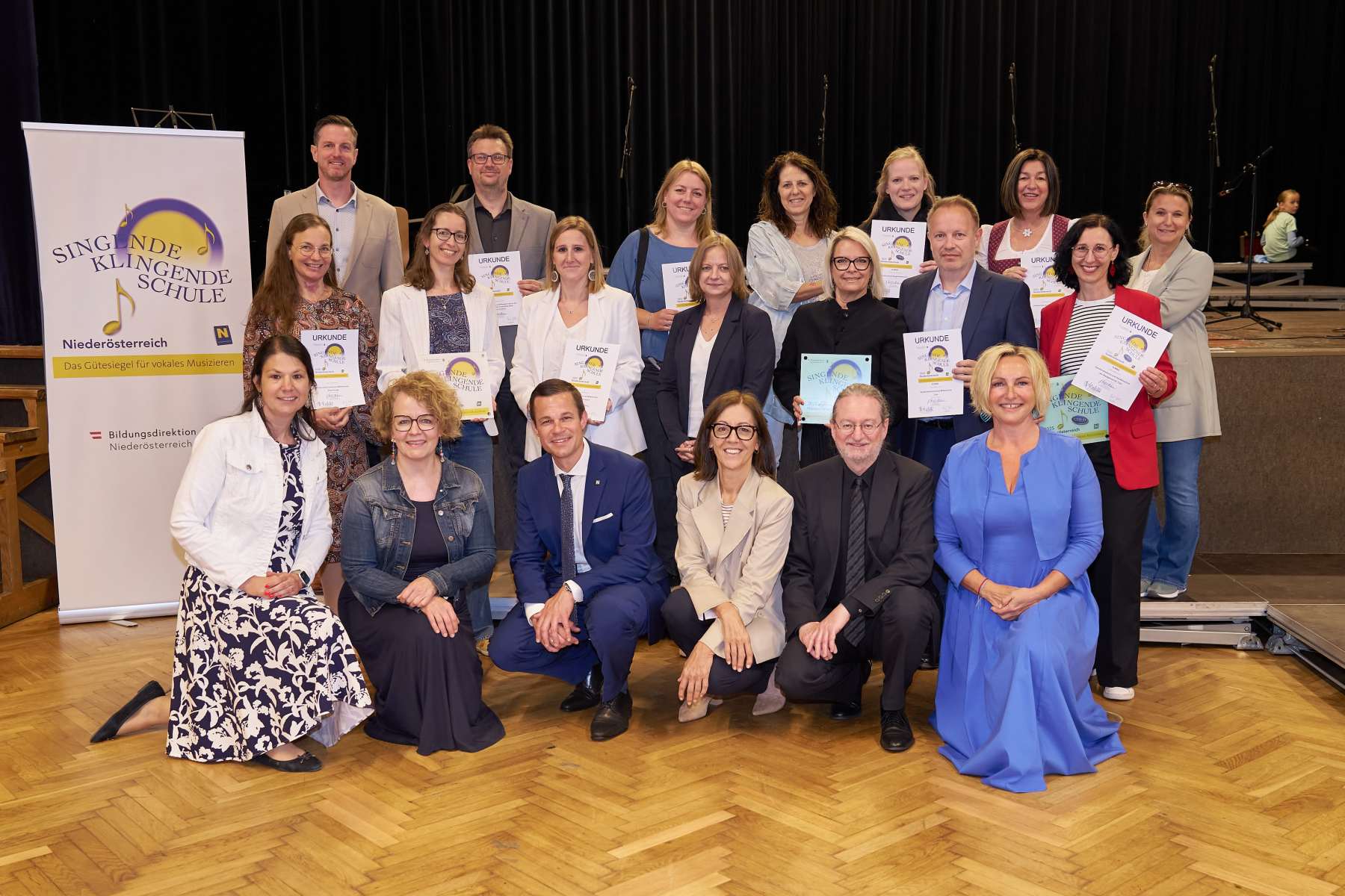Mit Stolz können wir vermelden, dass unsere Volksschule auch heuer wieder das Gütesiegel „Singende klingende Schule“ – wiederum in Gold – erreicht hat. Die Verleihung dieses Gütesiegels erfolgte Ende Mai in St. Pölten.