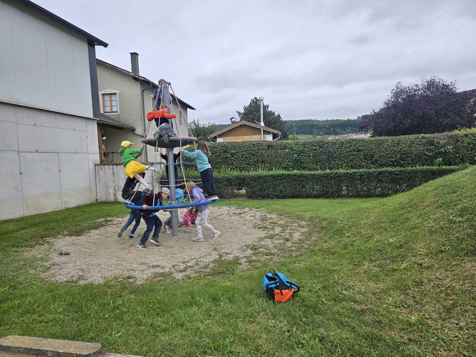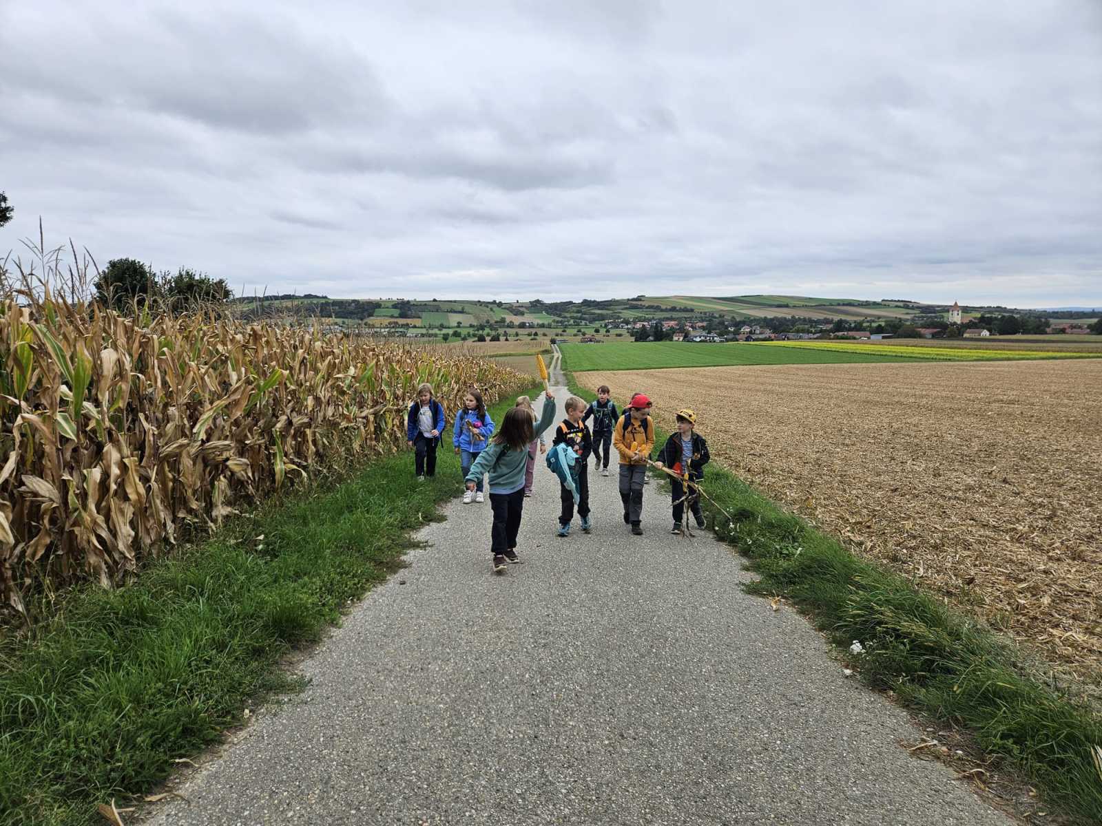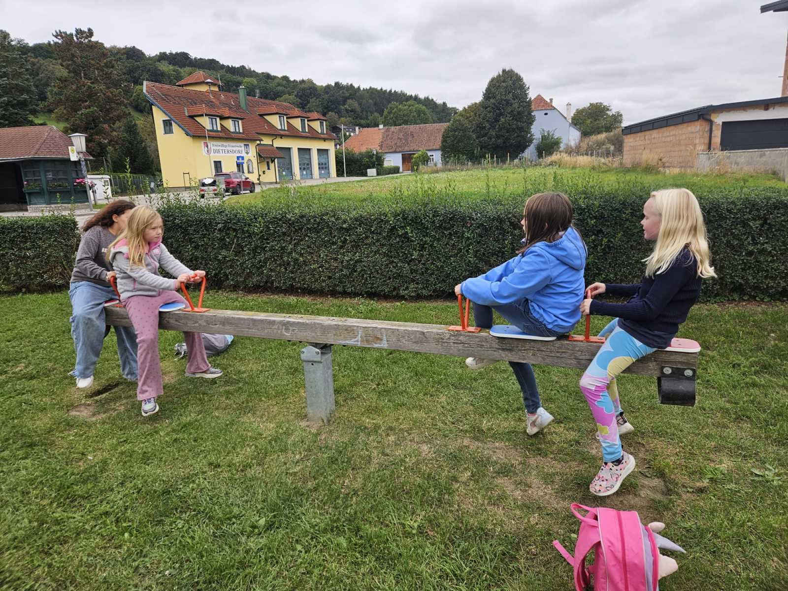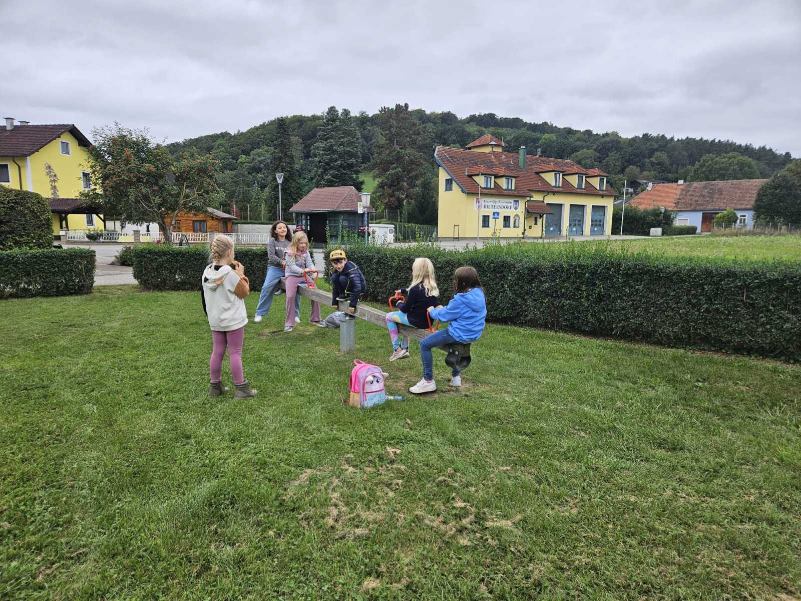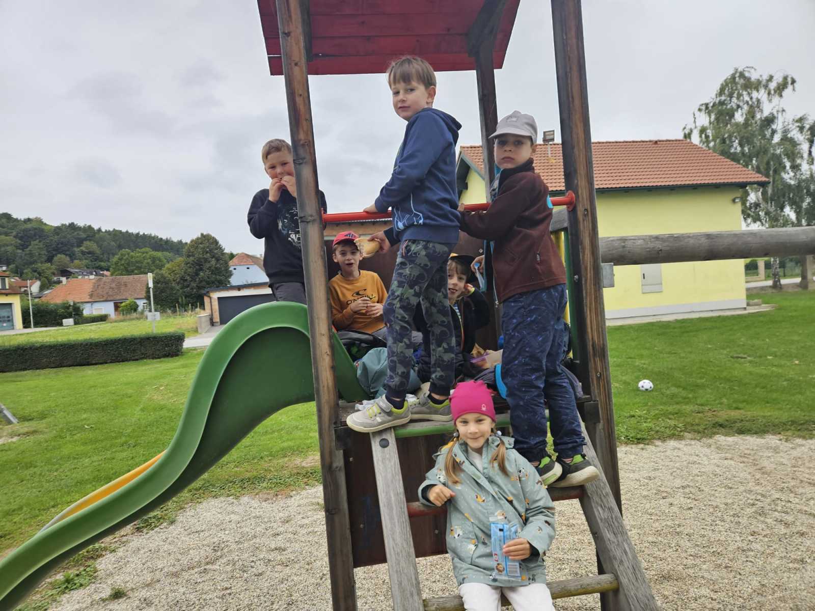 Am 24. September machte sich die Klasse 2b gemeinsam mit der 2d auf den Weg nach Dietersdorf. Trotz trübem Wetter hatten alle gute Laune. Im Garten von Familie Koller stärkten sich die Kinder mit Würsteln und hatten danach Zeit zum Spielen und Spaßhaben. Die Kinder der 2d verbrachten ihre Pause am Spielplatz beim FF-Haus in Dietersdorf und hatten die Möglichkeit sich richtig auszutoben.