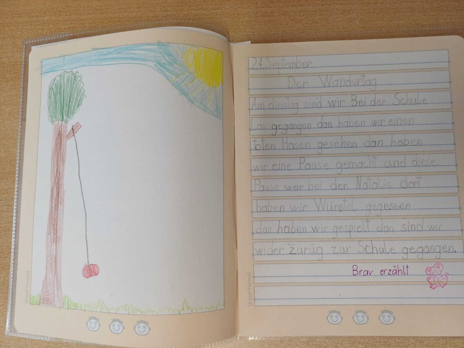Es war ein richtig toller Wandertag, der am nächsten Tag im Geschichtenheft nacherzählt wurde.