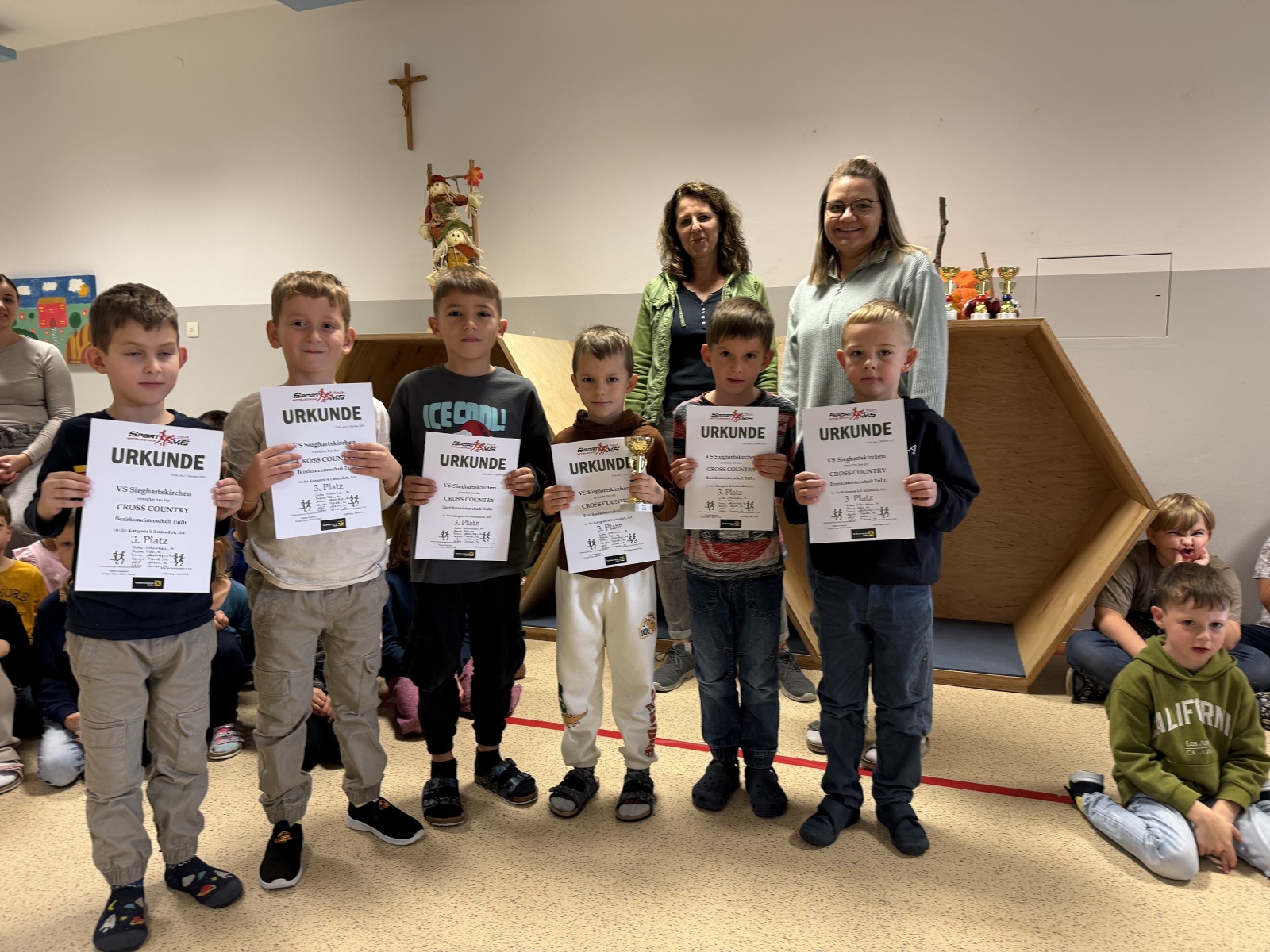 Am 7. Oktober nahmen über 50 sportbegeisterte Kinder aus allen Schulstufen unserer Volksschule am Cross Country Lauf im Aubad Tulln teil. Mit großem Einsatz und Teamgeist meisterten die Schülerinnen und Schüler die Laufstrecke – und das mit beachtlichem Erfolg! In gleich vier Kategorien der Mannschaftswertung konnten unsere Teams Pokale ergattern.