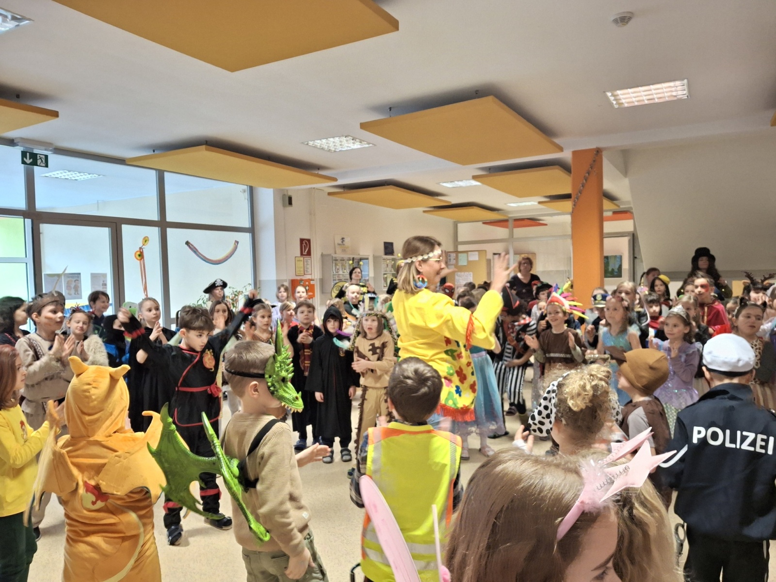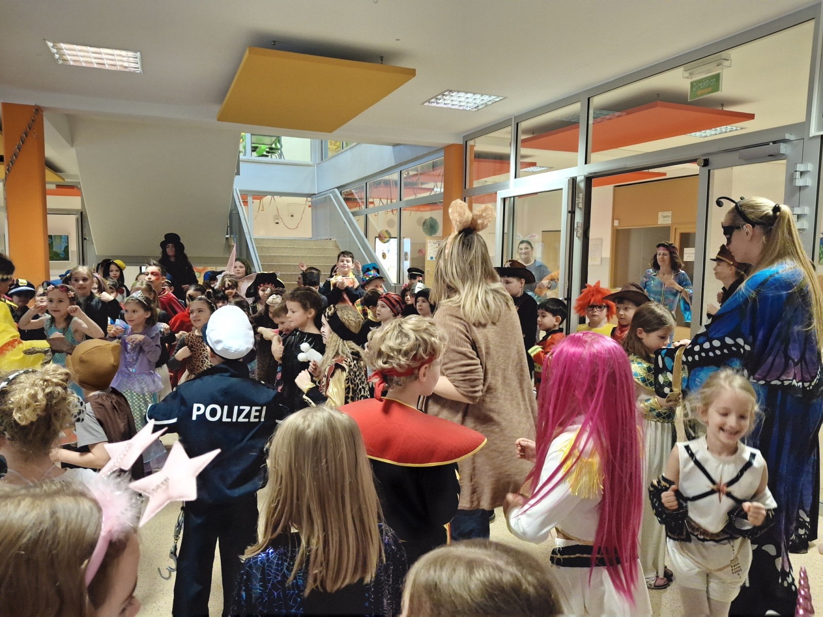 Schülerinnen und Schüler sowie die Lehrkräfte kamen in kreativen Kostümen und sorgten für eine tolle Stimmung im gesamten Schulhaus.
